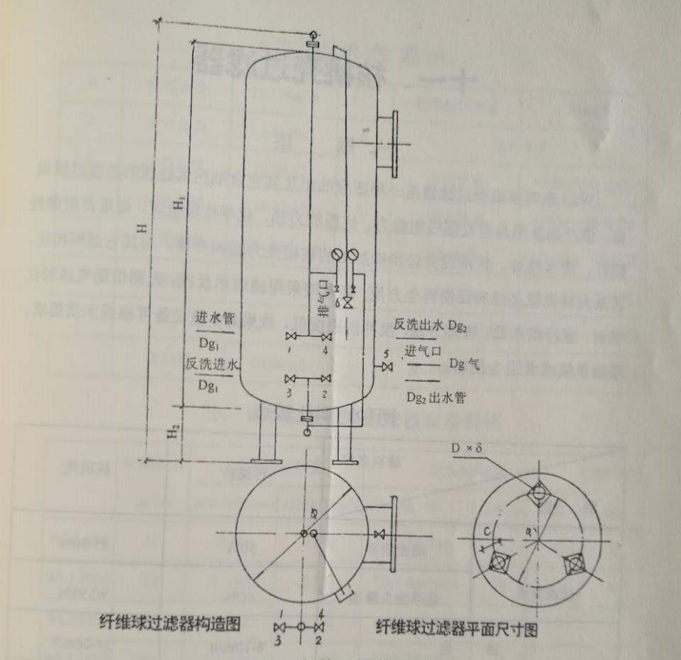 1、安裝時(shí),先按設(shè)計(jì)要求就位,并連接管道閥件,通水試壓合格后(試驗(yàn)壓力為5x10'Pa),泄空罐內(nèi)水,打開入孔蓋板,裝入纖維球?yàn)V料,封好入孔蓋板,啟動(dòng)水泵,用閥門將進(jìn)水量調(diào)節(jié)至設(shè)計(jì)進(jìn)水量,待出水濁度小于5mg/l時(shí),便可投入正常運(yùn)行。