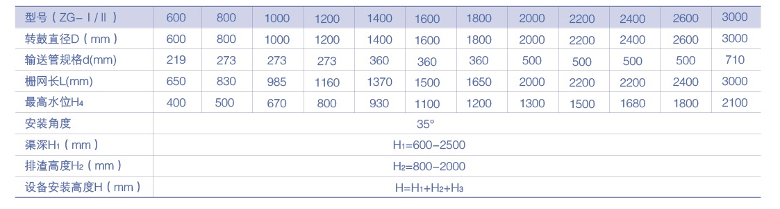 該設(shè)備與水平面成35度安裝在水渠中,污水從轉(zhuǎn)鼓的端頭流入鼓中,水通過轉(zhuǎn)鼓側(cè)面的柵縫流出,格柵將水中的懸浮物、漂浮物等留在轉(zhuǎn)鼓中,轉(zhuǎn)敏以一定的速度旋轉(zhuǎn),鼓的上方有尼龍刷和沖洗水噴嘴,將柵渣清除井通過螺旋輸送運轉(zhuǎn)擠干,脫水,運至上端排料斗,經(jīng)輸送機運走。